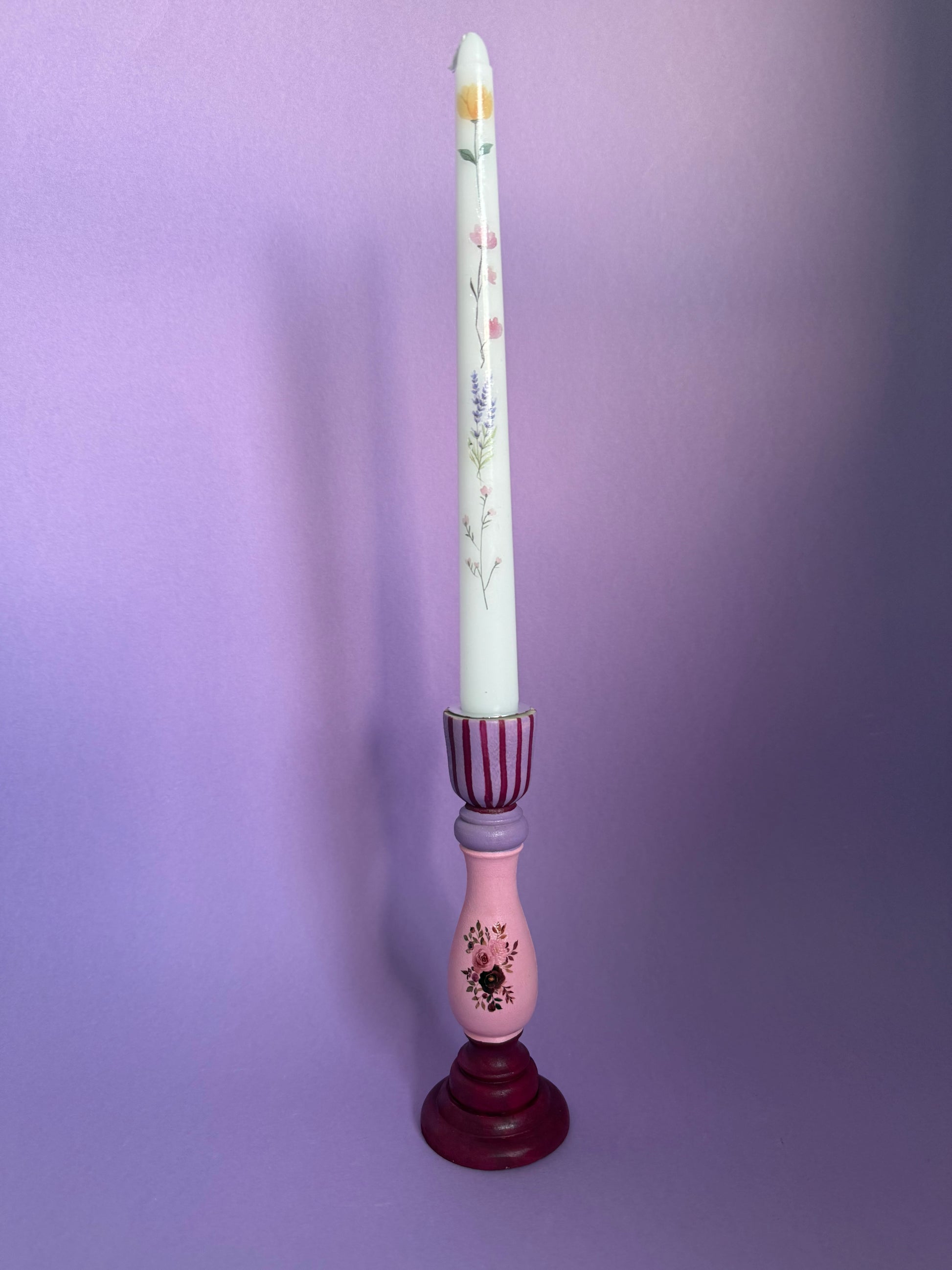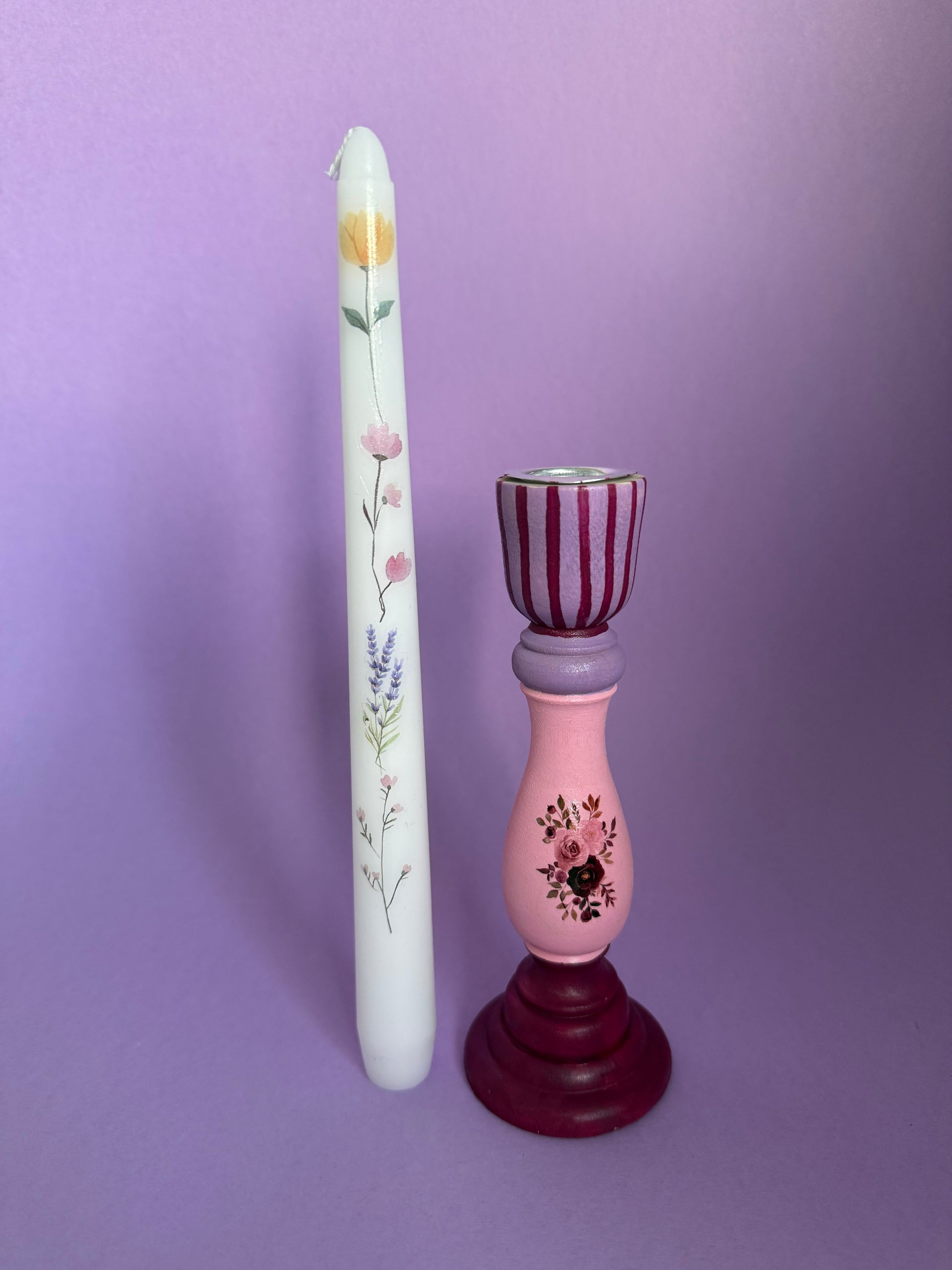 Flower Candlestick + Holder Set Pink, Purple