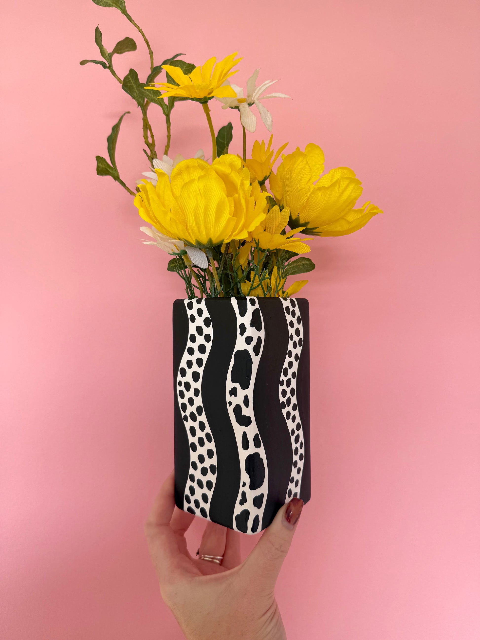 Monochrome Waves Ceramic Vase Cow Print Polka Dot Dalmatian