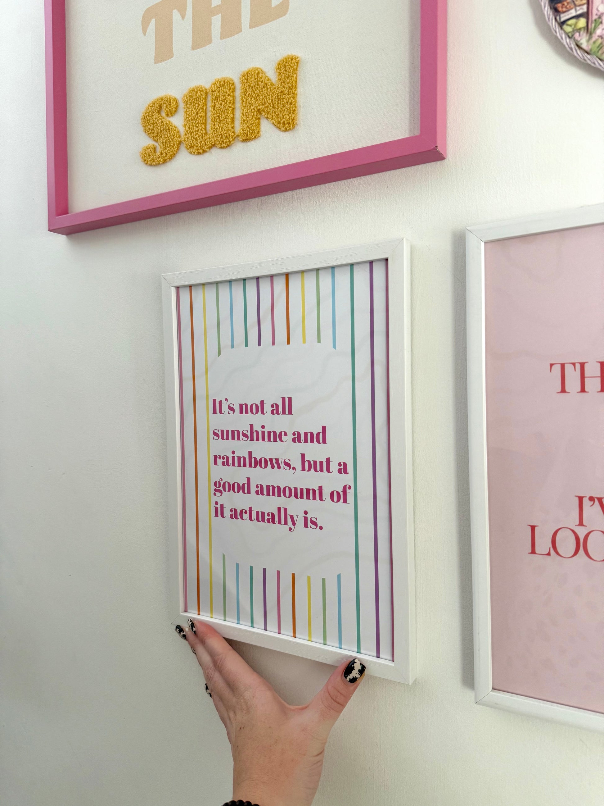 Sunshine & Rainbows Stripe Print Positivity Wall Art A4 Unframed